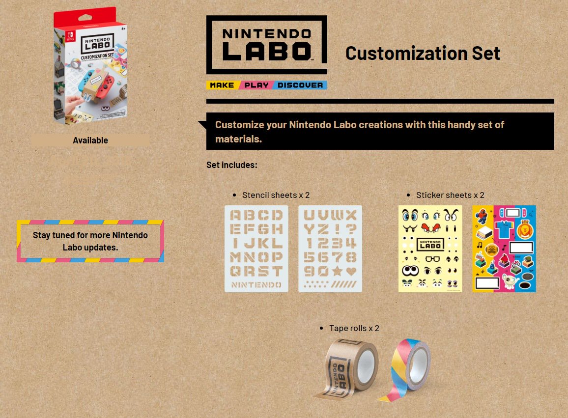 https://labo.nintendo.com/kits/variety-kit/ robot-kit https://labo.nintendo.com/kits/robot-kit/ customization-set https://labo.nintendo.com/kits/customization-set/ ![]() ![]() ![]() ![]() ![]() ![]()